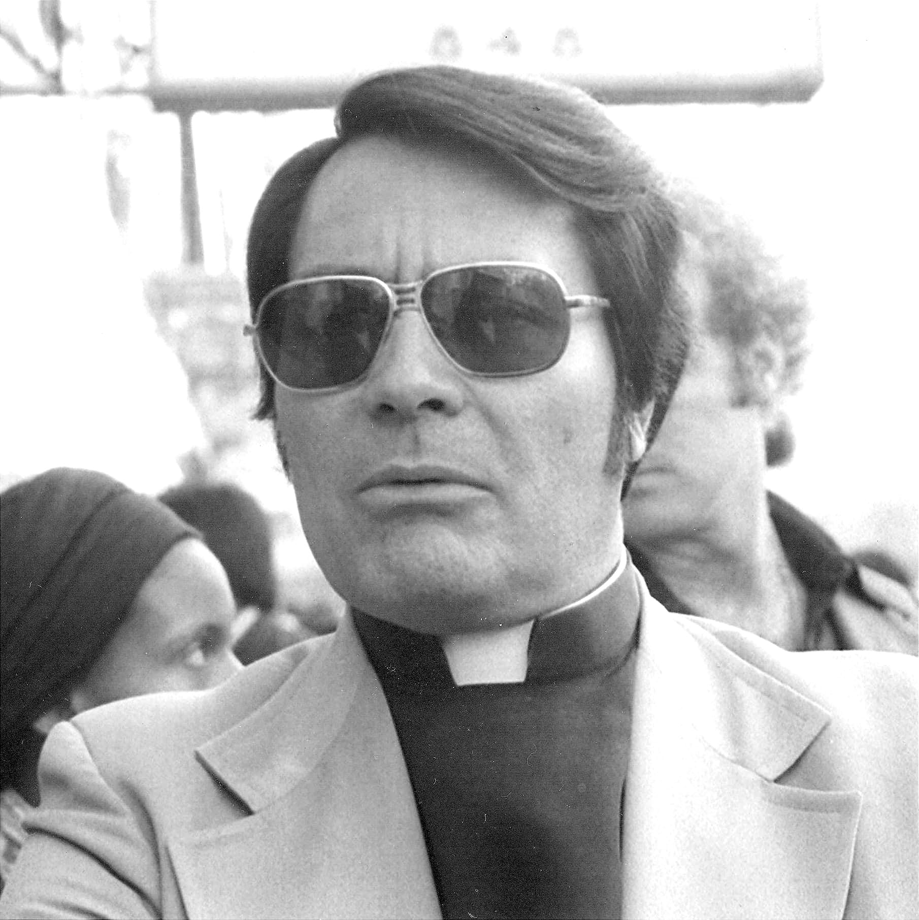 Jones’s signature aviator sunglasses may have once been a fashion statement, a hip priest amongst the Bay Area kids, but now he never seems to be without them as an increasing amphetamine and tranquilizer dependency has permanently shaded the areas under his eyes.