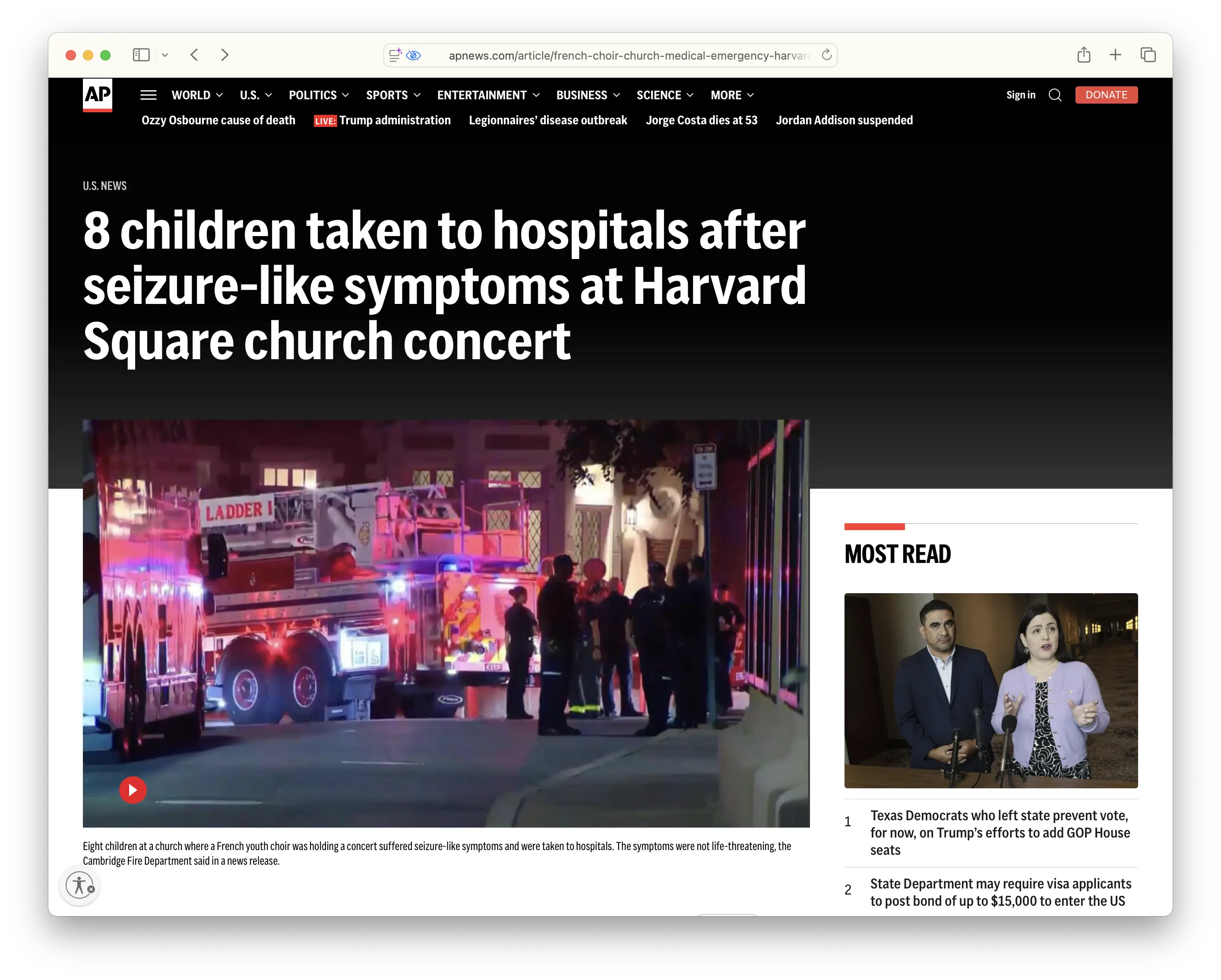On Tuesday evening, July 22nd 2025, a performance by an elite French youth choir at St. Paul’s Church in Cambridge, Massachusetts took a dramatic turn when eight members fell ill. The first person affected had trouble breathing, and was soon followed by several compatriots. The choir members, ages 11 to 13, quickly recovered after being rushed to a nearby hospital. A Hazmat team arrived soon after and swept the building, testing the air quality. The readings were normal. Some audience members said they noticed an unusual odor at the time of the incident.1 Curiously, not a single audience member was affected.