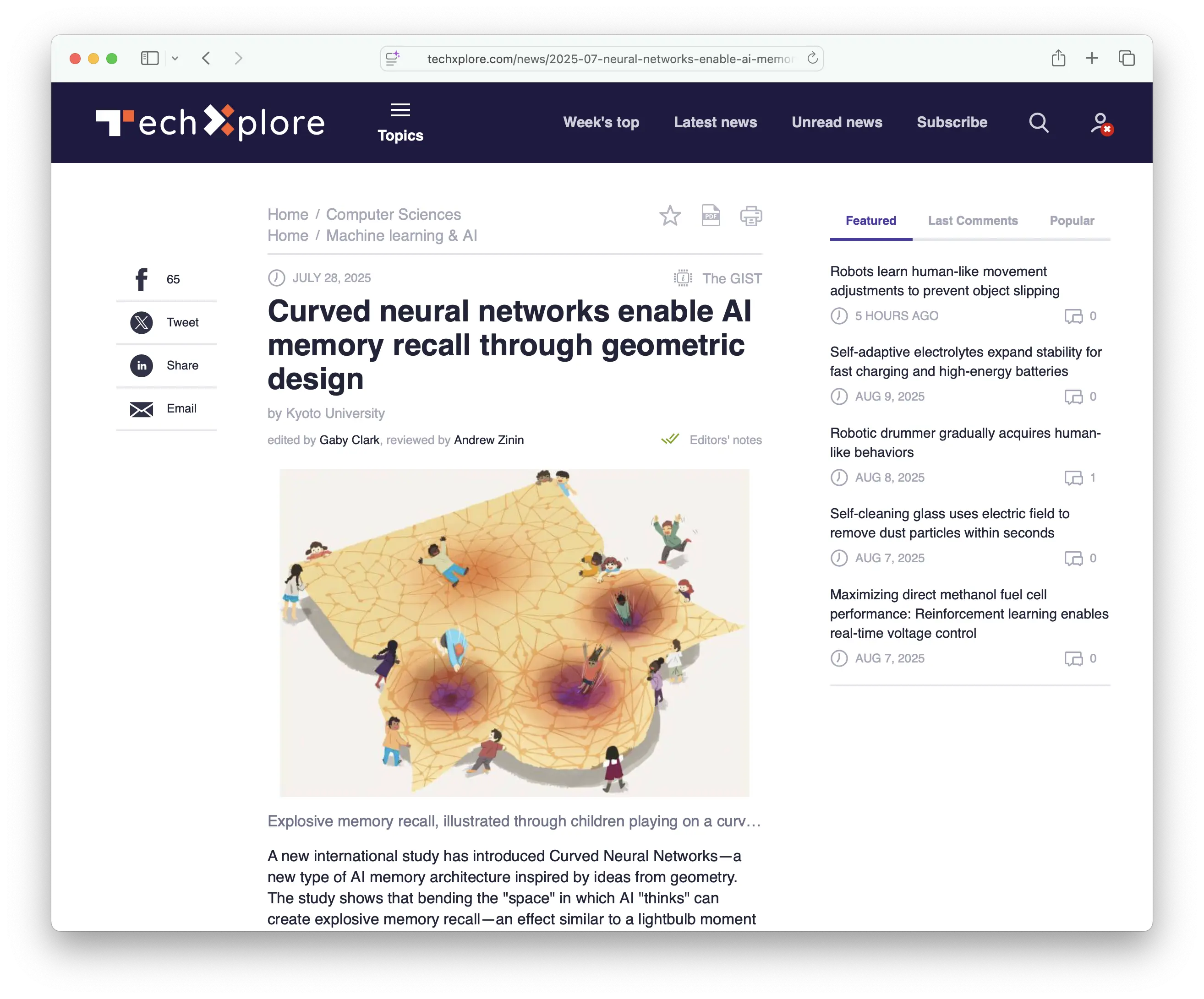 Last week, researchers from Kyoto University, the University of Sussex, BCAM, and Araya Inc. published a study in Nature Communications about Curved Neural Networks, a new AI memory architecture that uses geometric design to mimic how the human brain recalls memories. By allowing AI to “bend” its computational space, it can simulate an effect similar to a human “lightbulb” moment through “explosive memory recall.” This could lead to AI systems with faster, more human like memory recall for applications ranging from robotics to brain-inspired computing. However, as more of our memories migrate to machines, will it fundamentally change us?