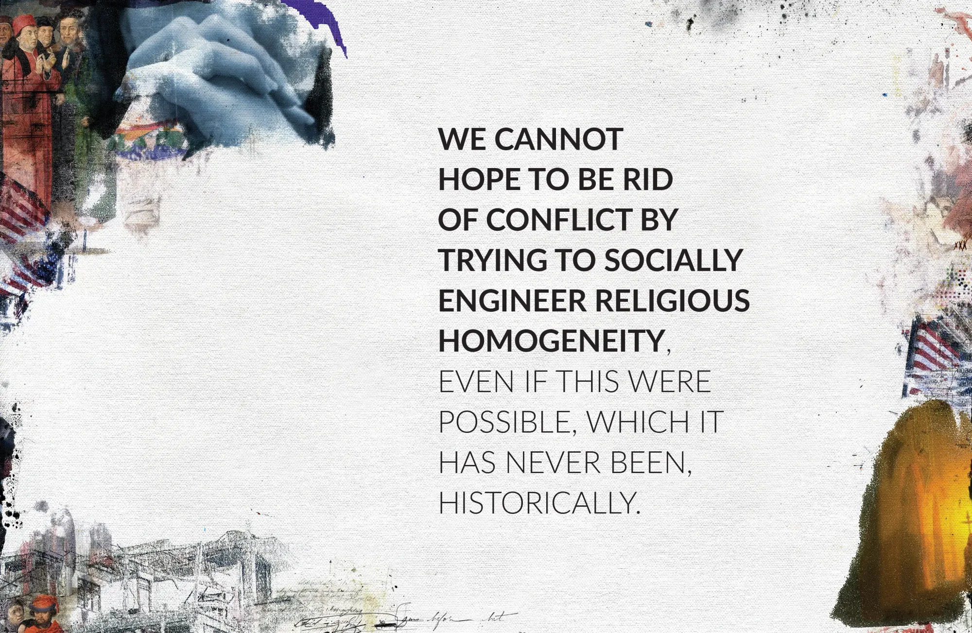 This is, again, not to dismiss the validity of serious cultural disputes over issues, such as immigration, ever-increasing income inequality, and cultural compatibilities, or of rising political extremism and polarization that need to be addressed specifically. However, we must do this by addressing each of those issues as they really are. We cannot hope to be rid of conflict by trying to socially engineer religious homogeneity, even if this were possible, which it has never been, historically.
