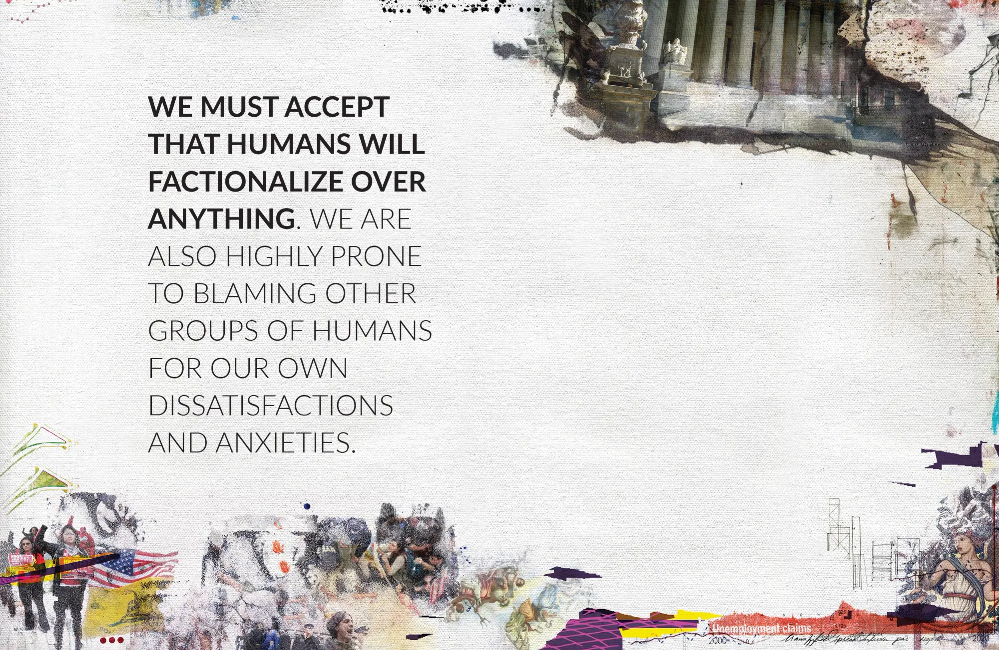 We must accept that humans will factionalize over anything. We are also highly prone to blaming other groups of humans for our own dissatisfactions and anxieties. It is probably not a coincidence that the Black Lives Matter protests of 2020 exploded into existence just after a pandemic was announced. Jewish pogroms have frequently correlated with outbreaks of plague. All too often, we seek to alleviate anxiety by finding an enemy we can fight. Factionalism and intergroup conflict are written into our tribal, territorial ape brains and so cannot be resolved by trying to artificially engineer a reduction in the number of external differences that we can fight about. If the material sources of anxiety remain, we will simply narrow our scope to differences that remain and fight over those. Jonathan Swift captured this in his 1726 novel Gulliver’s Travels, with his satire of factions warring over which end of a boiled egg to break!
