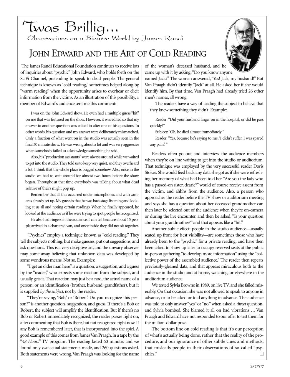 by Michael Shermer - ’Twas Brillig… John Edward and the Art of Cold Reading