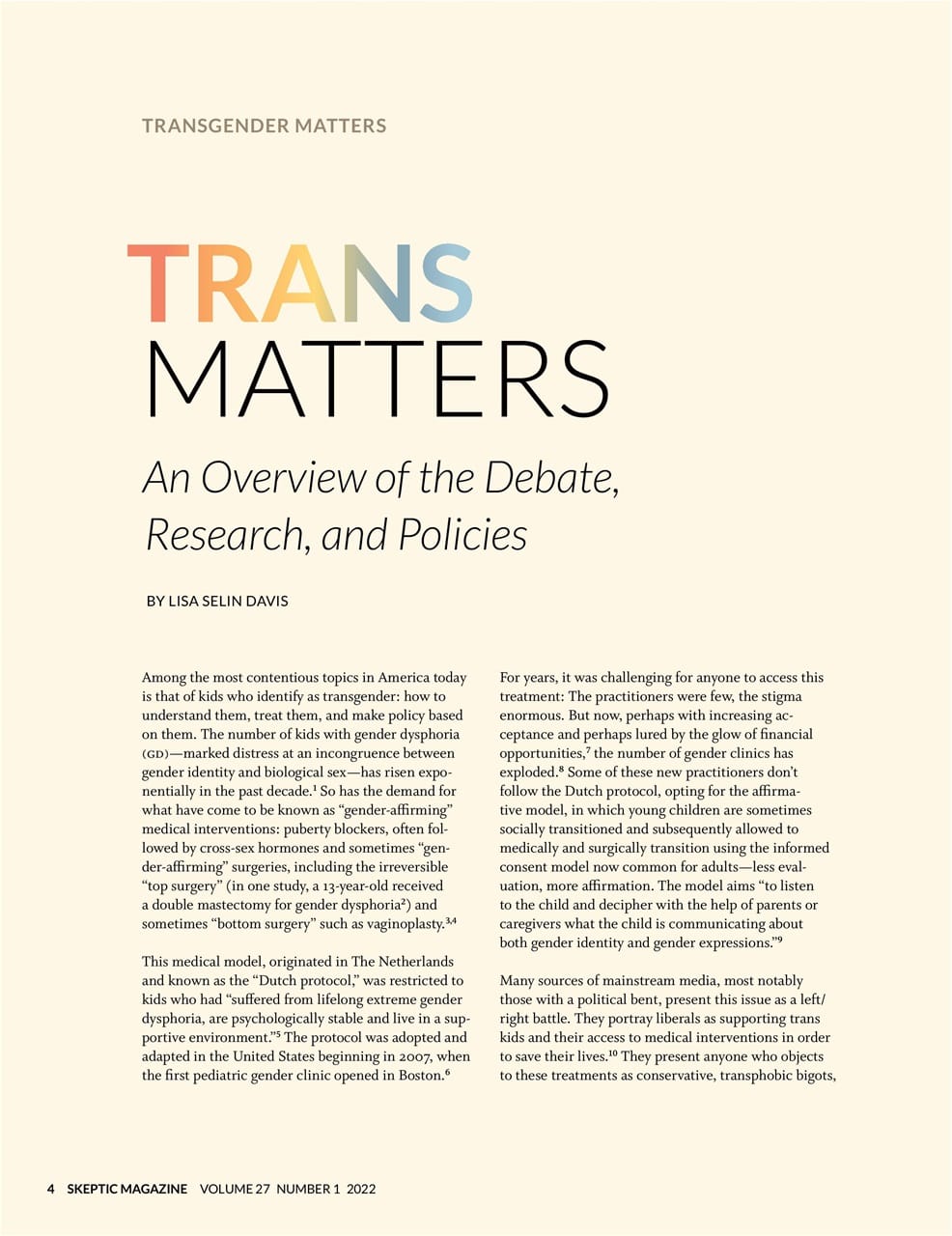- Trans Matters: An Overview of the Debate, Research, and Policies